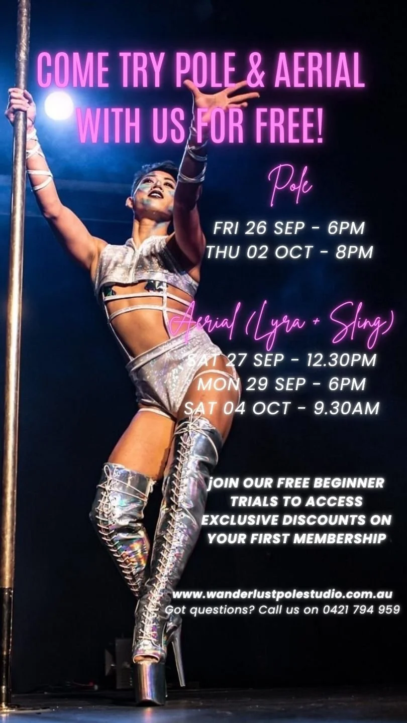 WANT TO TRY POLE AND AERIAL? CLICK HERE TO START YOUR EXCITING JOURNEY!